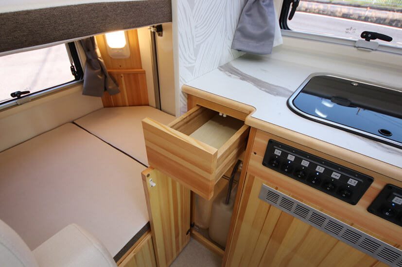 給/排水タンクは外部バケッジドアからアクセスできます。