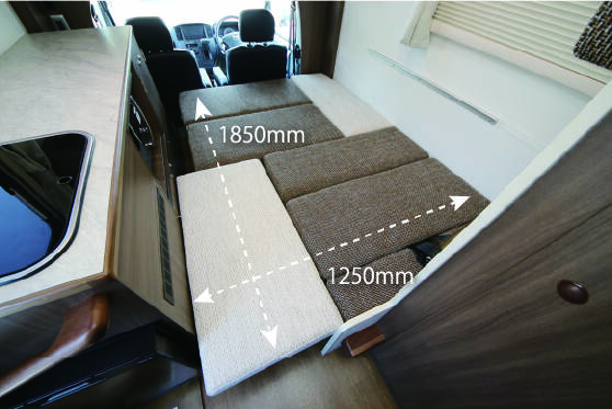 ダイネットを展開すると1850mm×1250mmのフロアベットに