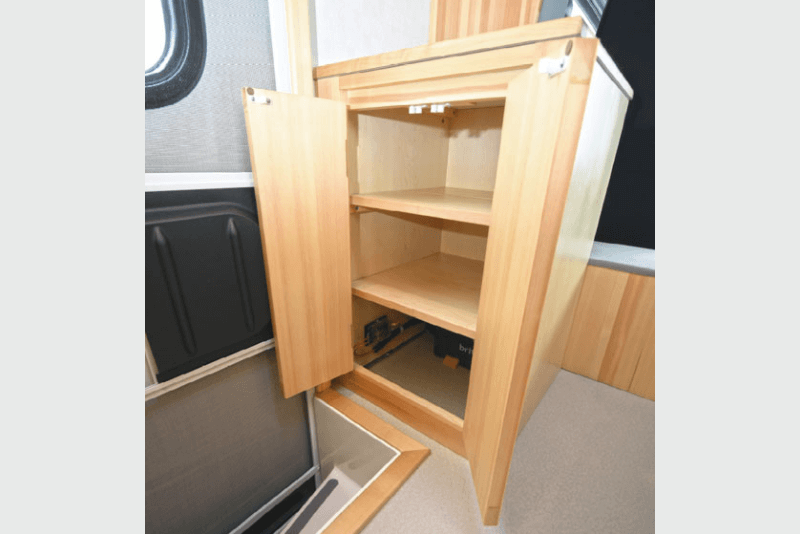 力強いディーゼルエンジンを選べば、左側面には大容量水タンクを搭載し、旅の自由度はさらに上へ。