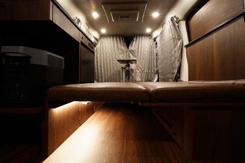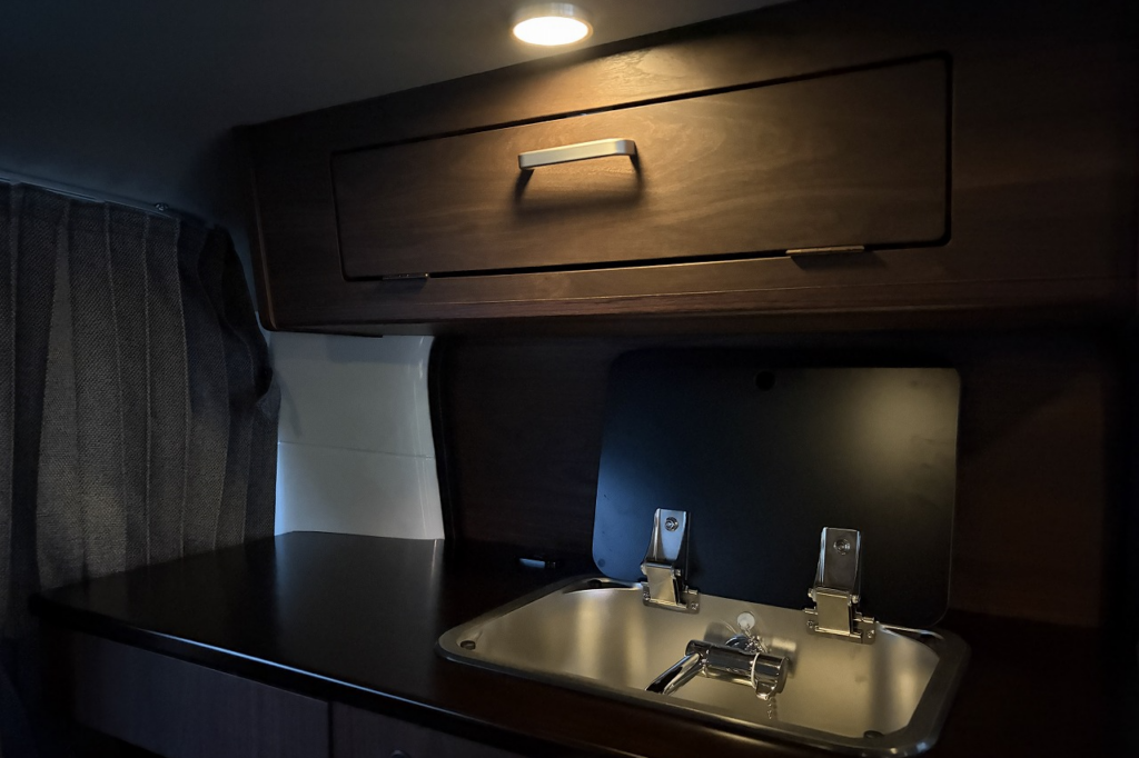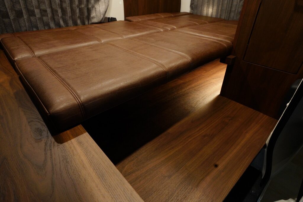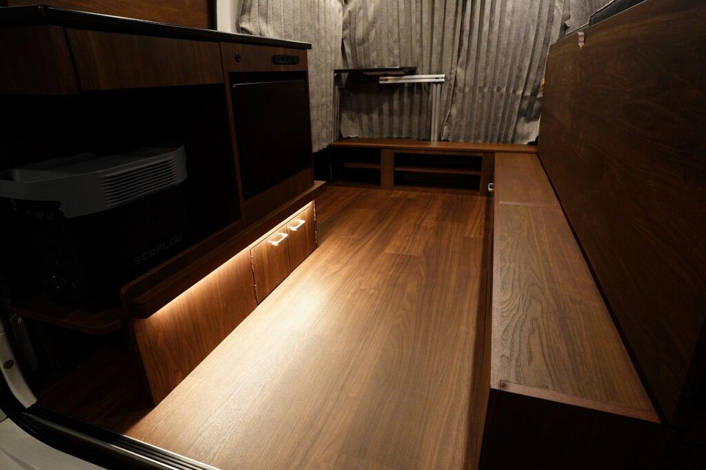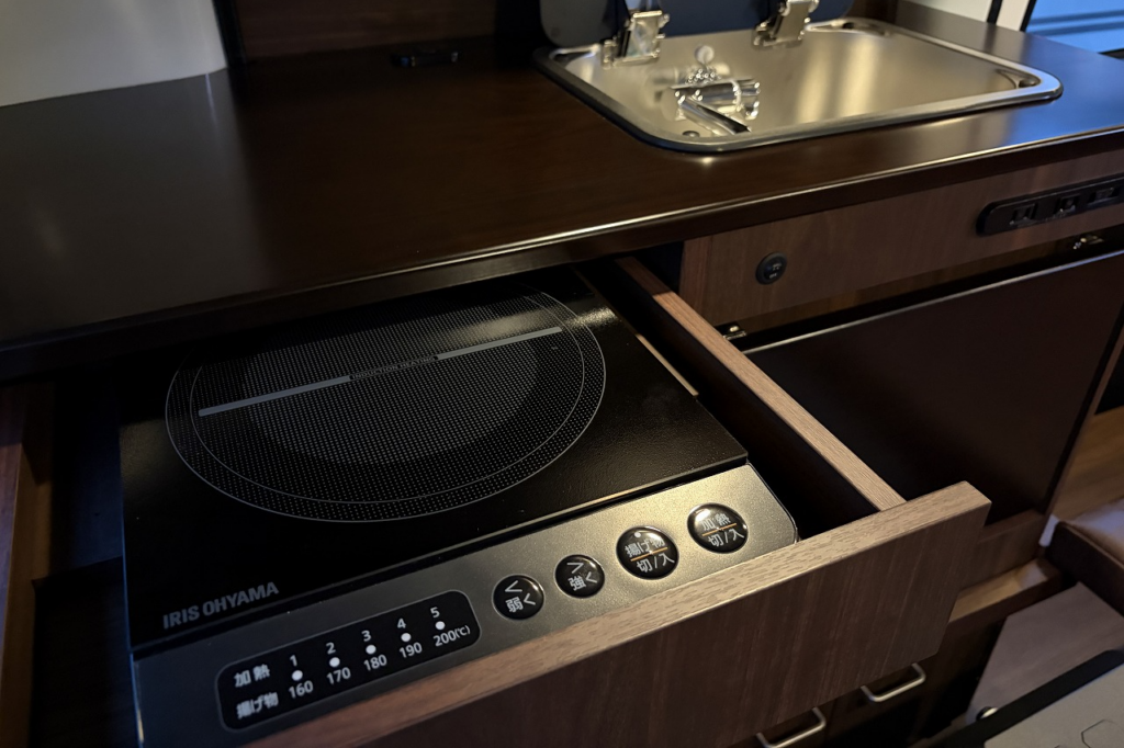 シンクや10L給排水タンク、跳ね上げ式テーブルを装備し、高級感あふれる家具で上質な空間を演出します。