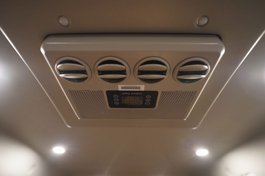 標準装備の12Vルーフクーラーは、室内スペースを広く確保できるだけでなく、車体下部に室外機がないため融雪剤や地面との接触によるダメージの心配もありません。