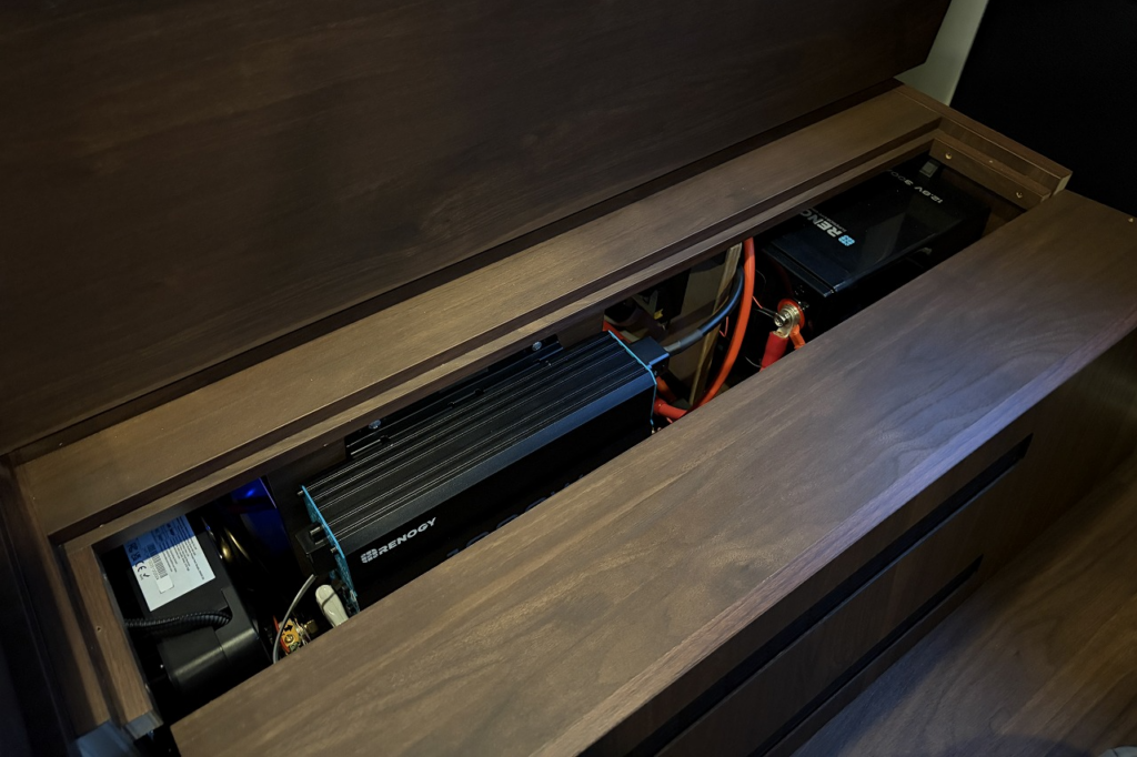 ギャレー下にはポータブルバッテリーを設置できる専用スペースを確保。