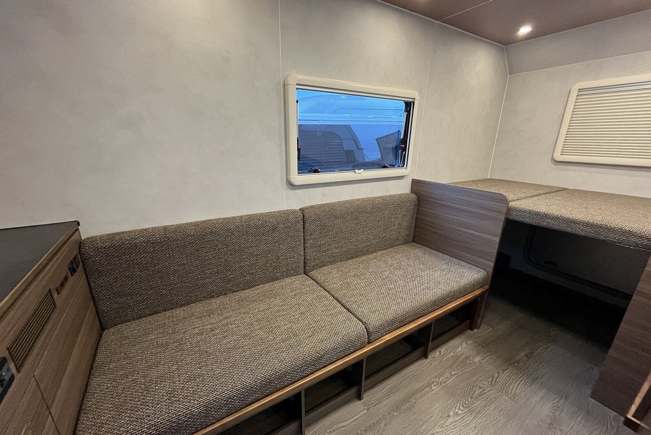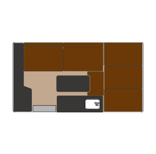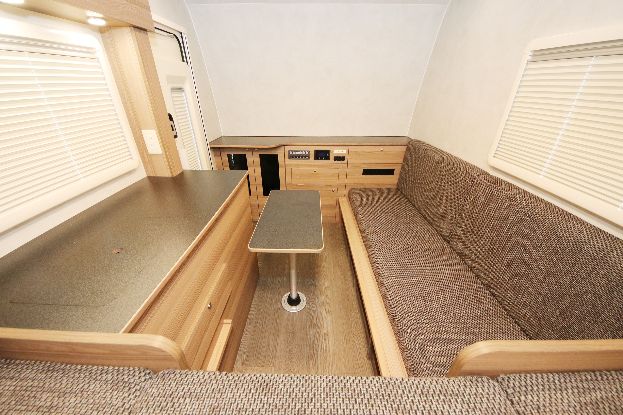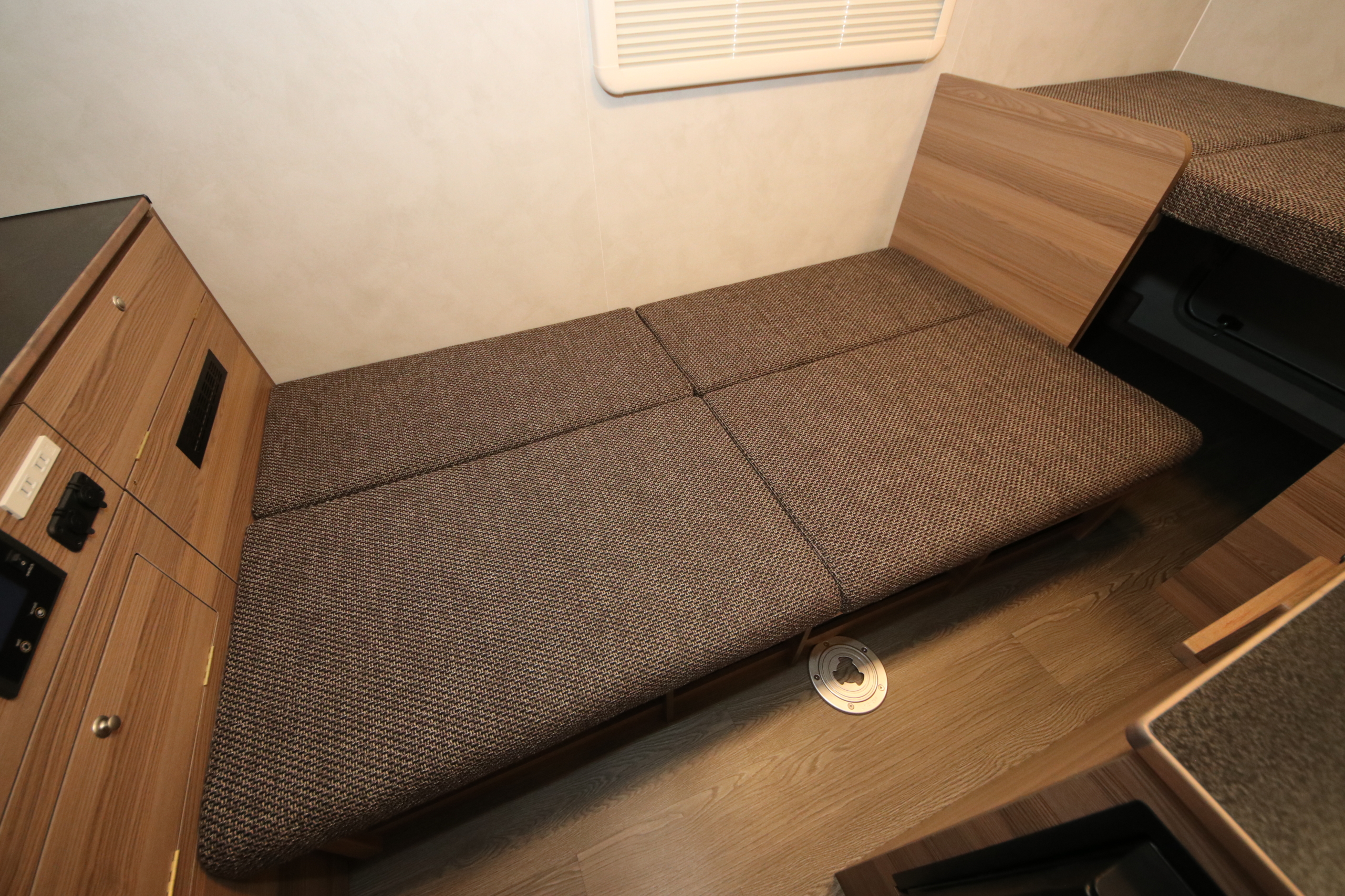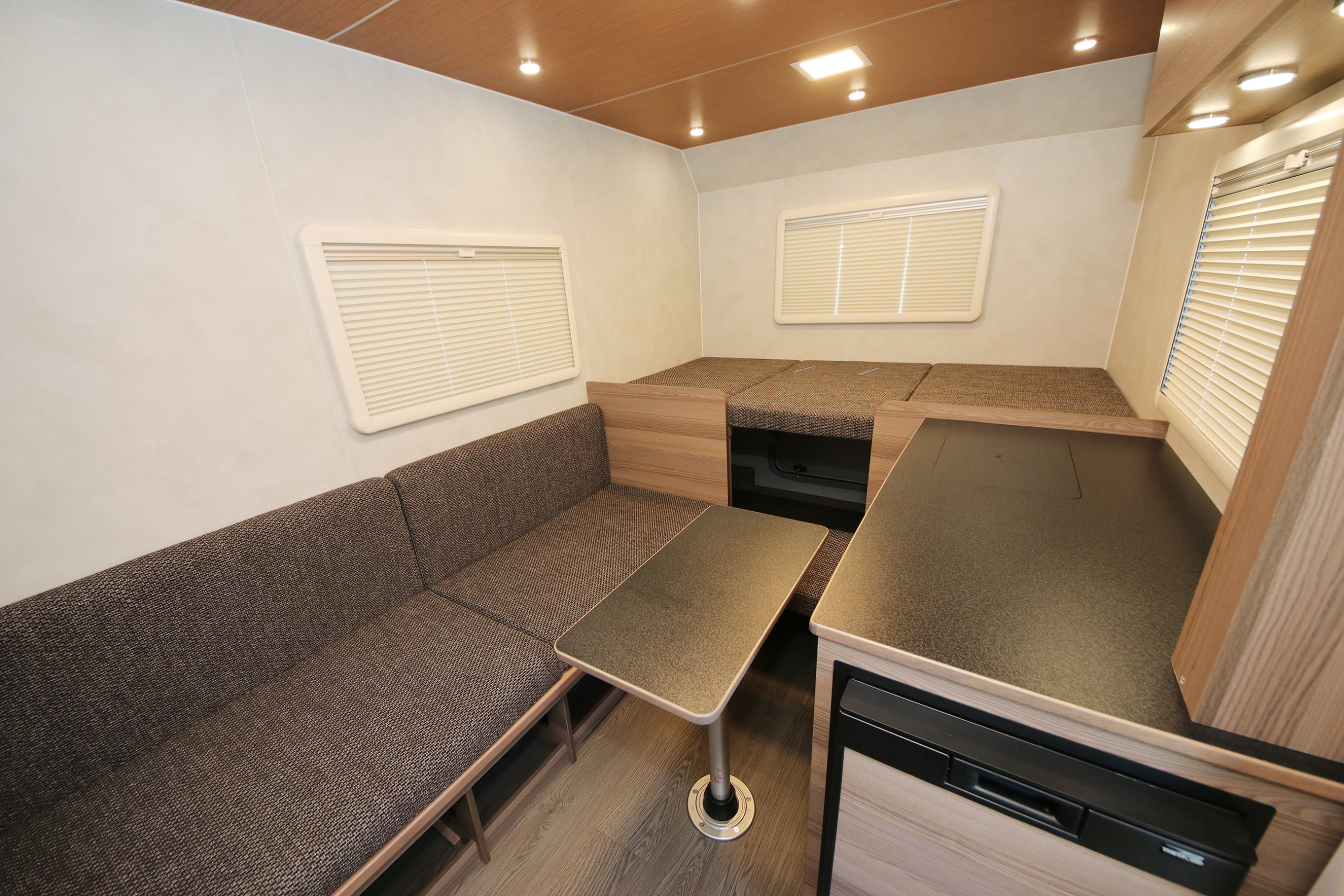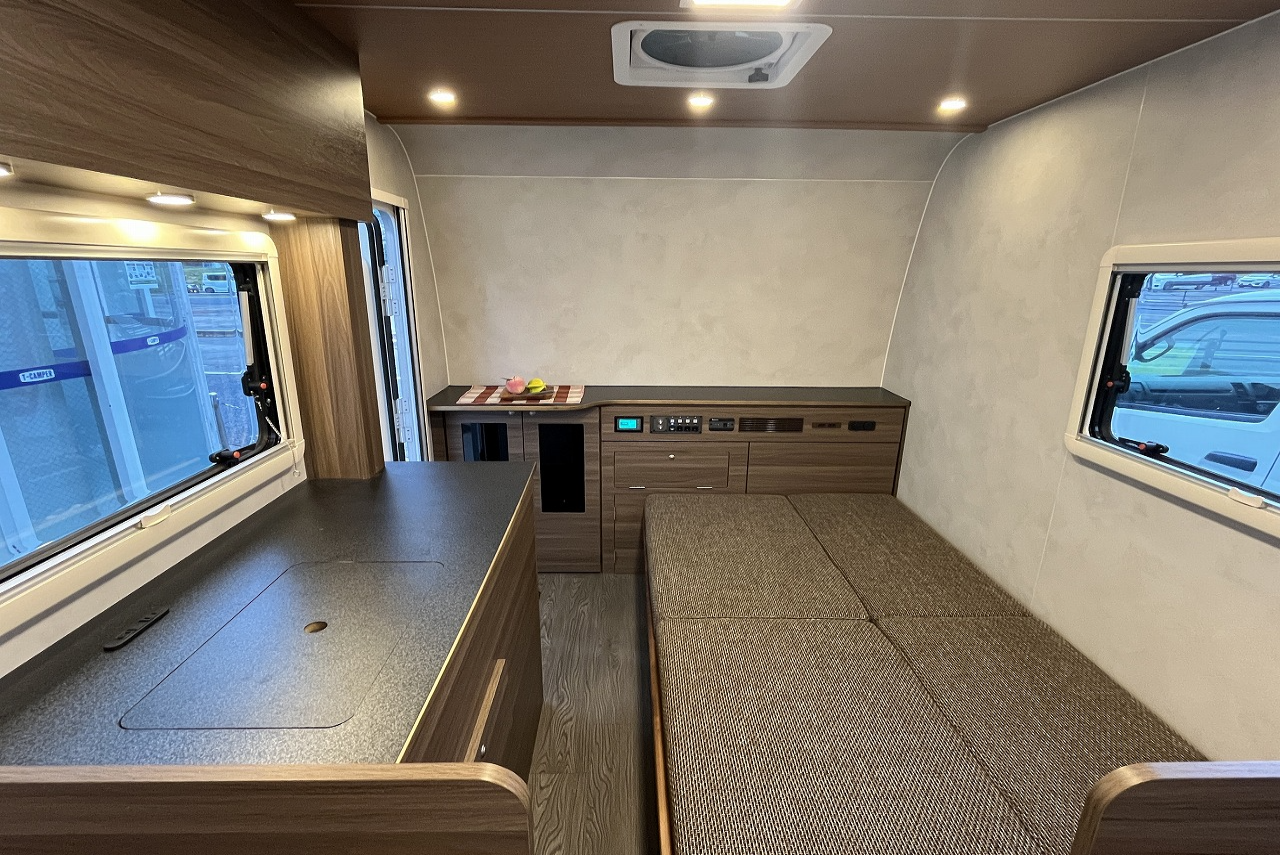 | 主要装備 | ・キャレー(シンク・作業台) ・脱着式テーブル ・ソファ&展開式ベッド ・カップリングヘッド ・各種収納庫 ・12V冷蔵庫(49L) ・カセットコンロ ・床クッションフロア |