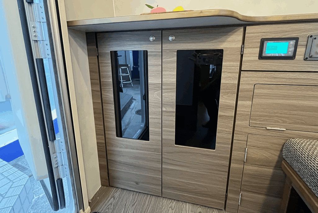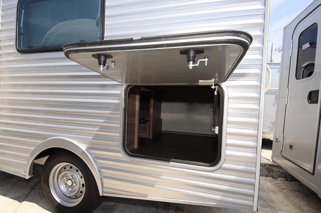 | 外装装備 | ・外装アルミ鋼板(高断熱パネル入) ・ボディ内部断熱材 ・外部ストレージドア ・アクリル二重窓 ・網戸付きエントランスドア ・コーナー安定ジャッキ ・安定ジャッキ用クランクハンドル ・慣性ブレーキ ・ダンバーアシスト付ハンドブレーキ |